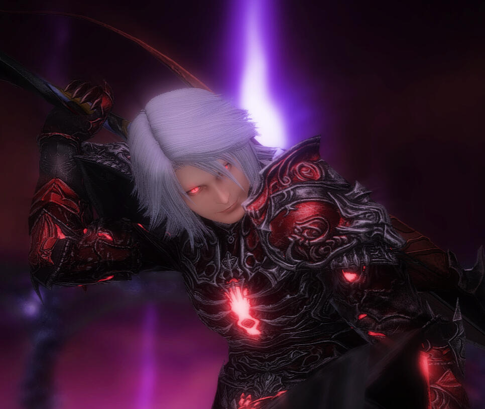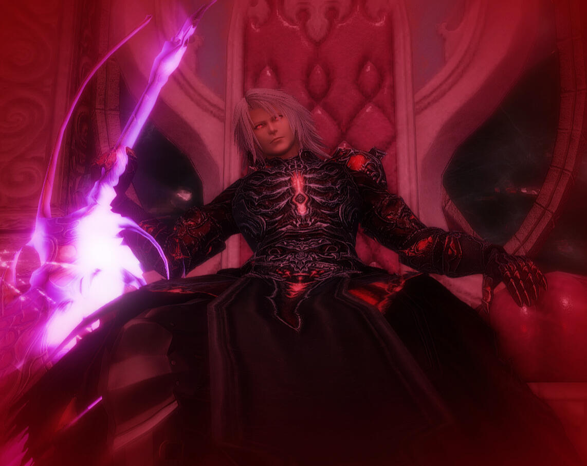 One day, walking the streets of Ishgard, Red stumbled across a pitch black soul crystal—or perhaps it found him. A voice whispered from it, and then, darkness. When he awoke, the streets were slick with blood, the bodies of Temple Knights surrounding him. He fled Ishgard, hunted and haunted.From that point forward, Red became something more. The soul crystal hadn’t simply granted him power—it had awakened Xak, a violent, bloodthirsty force within him. Xak did not live in the crystal, but within Red himself. He was Red’s Darkside, his Esteem, two sides of the same coin. The soul crystal was merely a physical manifestation of Red’s own aether.Xak was no gentle mentor. His speech patterns and demeanor echoed a sinister teacher. He frequently reminded Red of the difference between a king and his horse, insisting that only by developing an instinctual thirst for battle could Red truly master the Dark Arts.