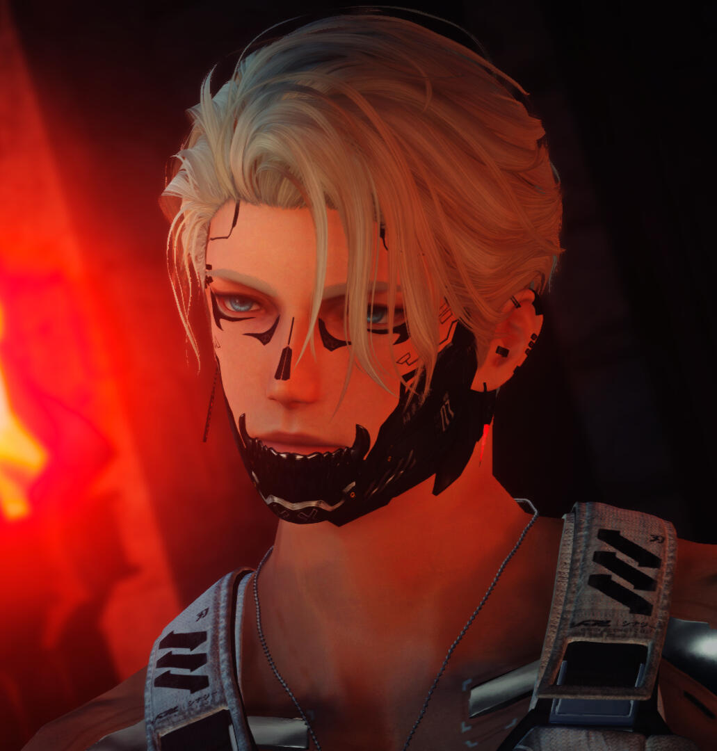 Later, Red found himself involved with a voidsent named Vyrannis. The original pact was not his—it had been forged by a dear friend, Ashe Xaia, in a desperate attempt to erase painful memories. To spare her, Red took her place.Vyrannis sought to dominate Red, but found her will matched—and ultimately caged—by Xak, already entrenched in Red’s mind.Red eventually joined a criminal organization known as the Red Dragon, led by a male Viera named Samaru Senju. While under their employ, he was captured and thrown into their dungeon—stripped, beaten, and barely kept alive. There, Samaru attempted to bind Red to his service via a blood rune painted with Red's own blood. The spell was completed, but never activated, thanks to an objection from Vyrannis, of all beings.While imprisoned, Red was temporarily blinded during a scuffle with a Miqo'te Machinist named Nalako nan Rasha, one of Samaru's enforcers. She later visited Red in his cell and reversed the blindness. The two shared a cordial, though cautious conversation—though it was Xak, not Red, speaking at the time.Eventually, Red called upon Vyrannis's powers, conjured a crimson aetherial scythe, and escaped the dungeon—reclaiming his gear and exacting vengeance.Some time later, Red reunited with Chisato, a dull-toned, no-nonsense Raen doctor affiliated with the Red Dragon. He met her just outside their compound and apologized. Samaru was there, too. Red severed ties with them both. Chisato forgave him and removed the bounty on his head.
